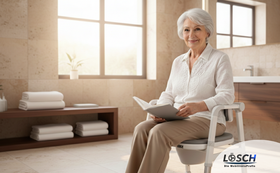 Der Lösch Reha Toilettenstuhl Versa vereint modernes Design mit hoher Funktionalität für den täglichen Pflegeeinsatz. Entwickelt für Senioren, pflegebedürftige Personen und die häusliche Pflege überzeugt die Sitzkommode durch stabile Verarbeitung, hohe Belastbarkeit und praxisnahe Ausstattungsdetails, die den Alltag spürbar erleichtern.